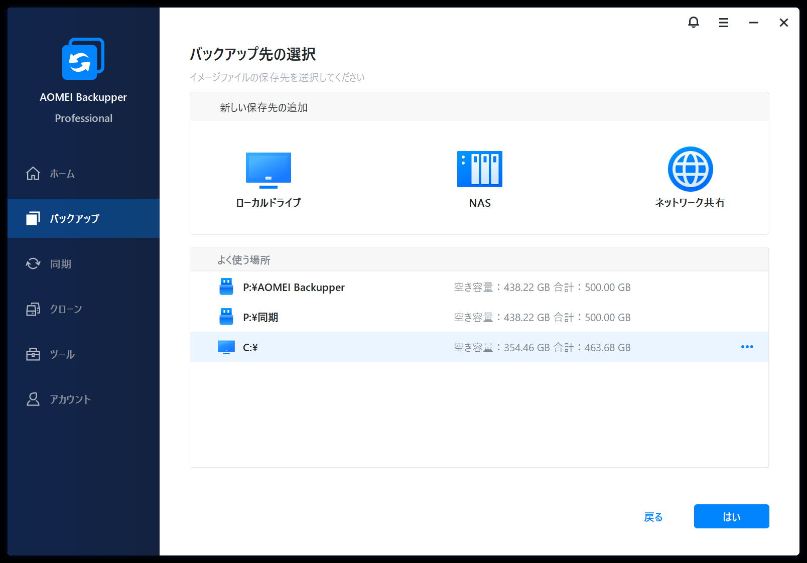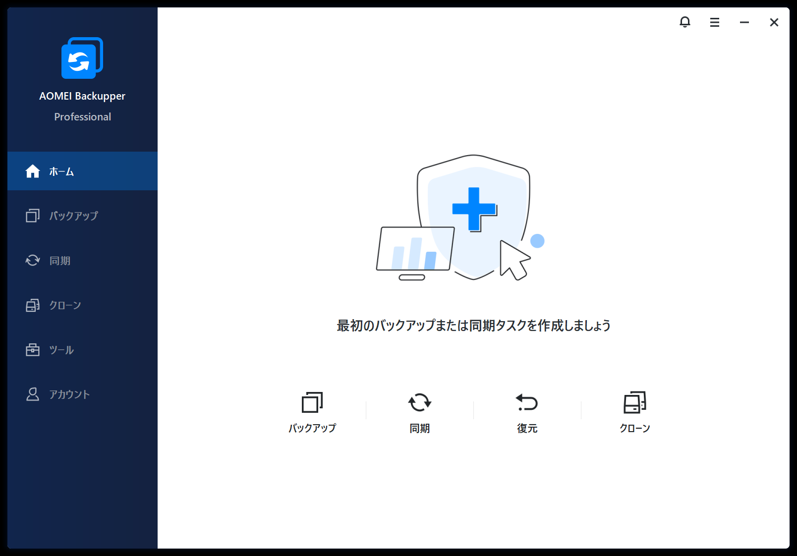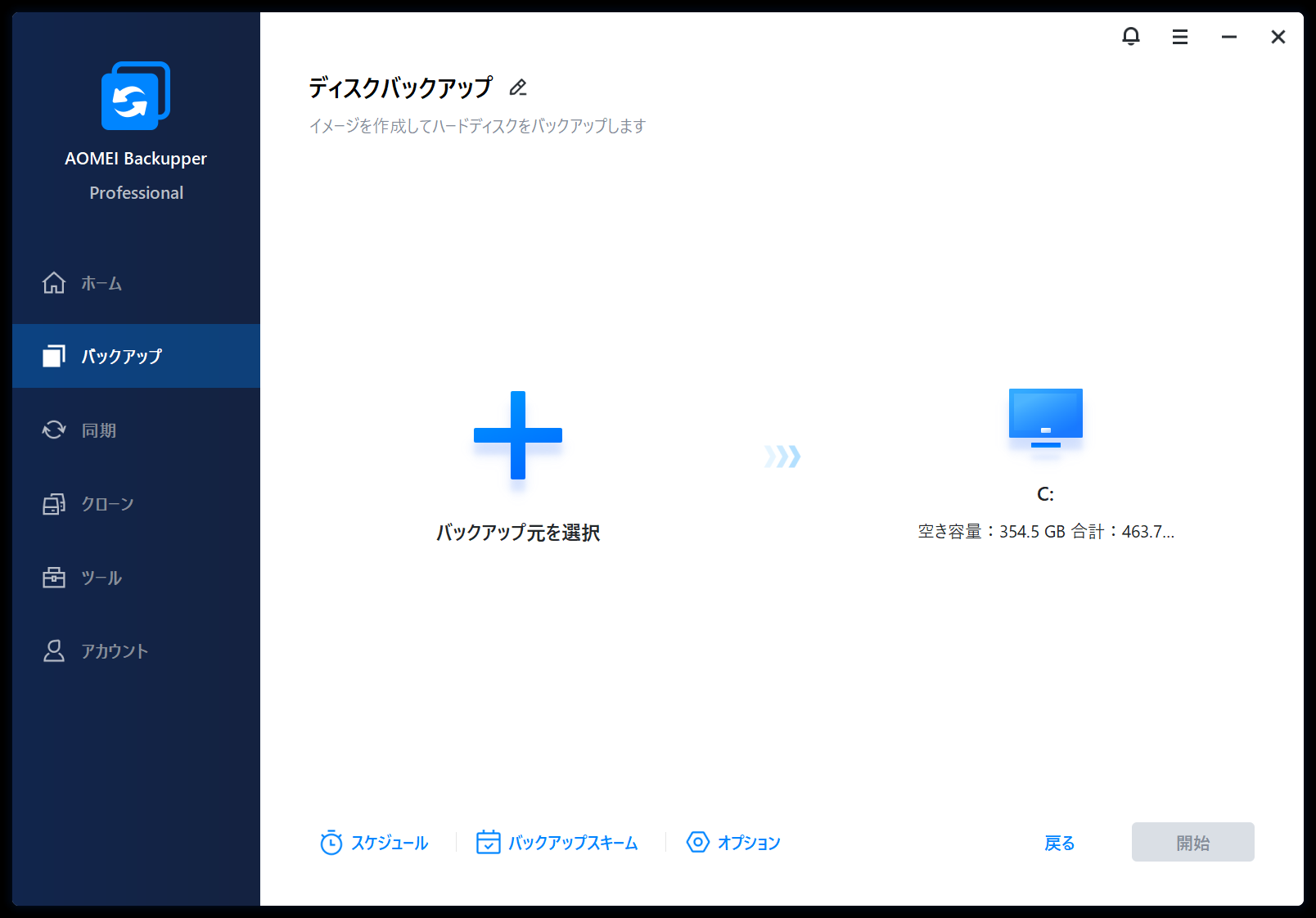 ライセンスの仕様が異なるだけで、AOMEI Backupper WorkstationまたはProfessionalとまったく同じ使い勝手で、不慣れな方でもすぐに理解できるようになります。最初のうちは挙動に慣れるために、ごく簡単にCドライブのバックアップを定期的に実施するだけでもスタートできます。
