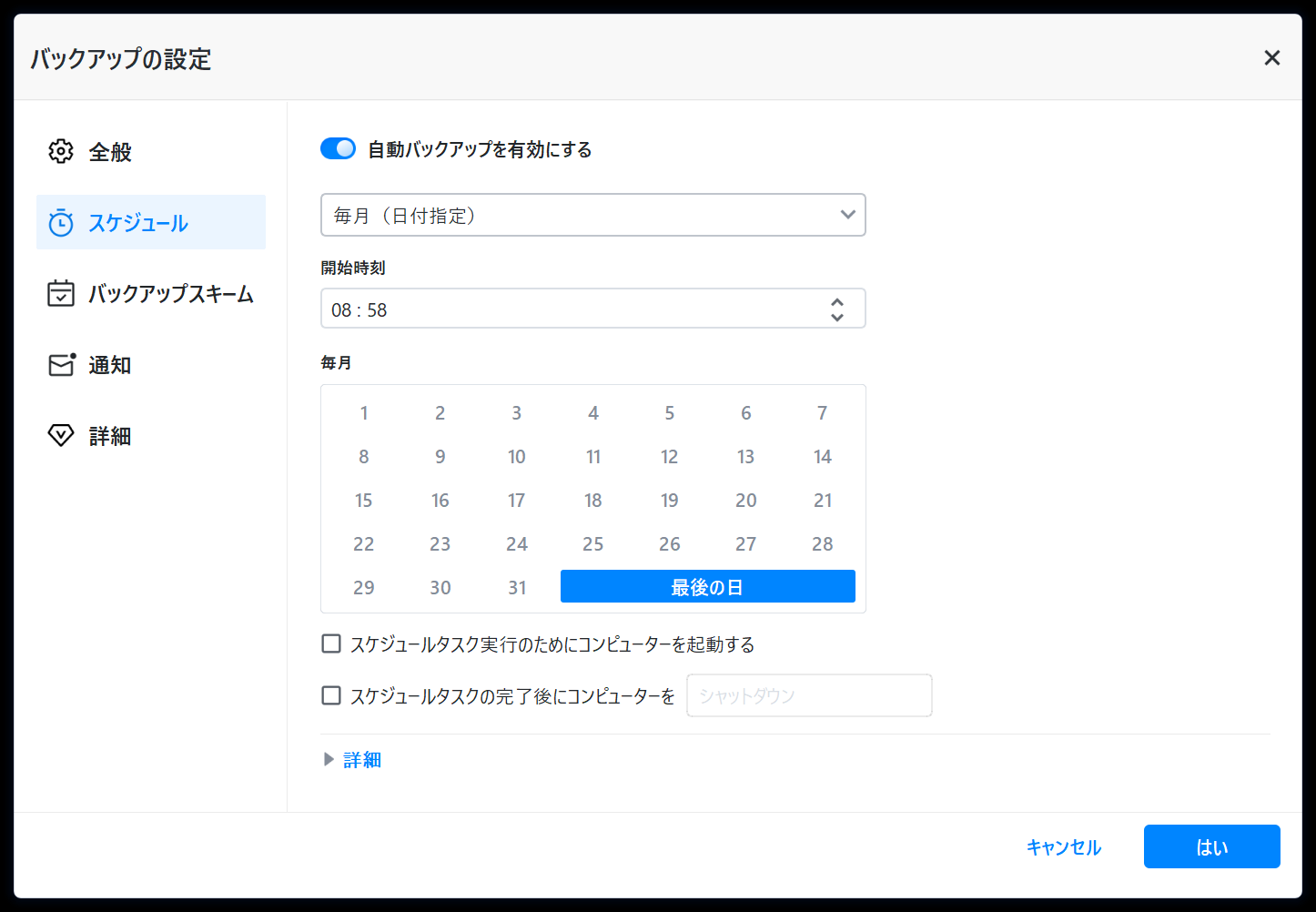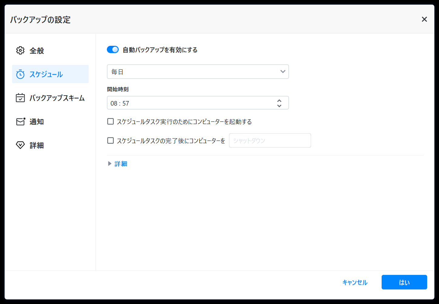 もちろん、職場のNASなどにバックアップを集積したい、バックアップの時間に電源が落ちていたPCをどうするか設定したい、など細かなご要望にも相当柔軟に対応可能です。慣れてきたら設定を細かくすると、より便利に使えるようになるはずです。