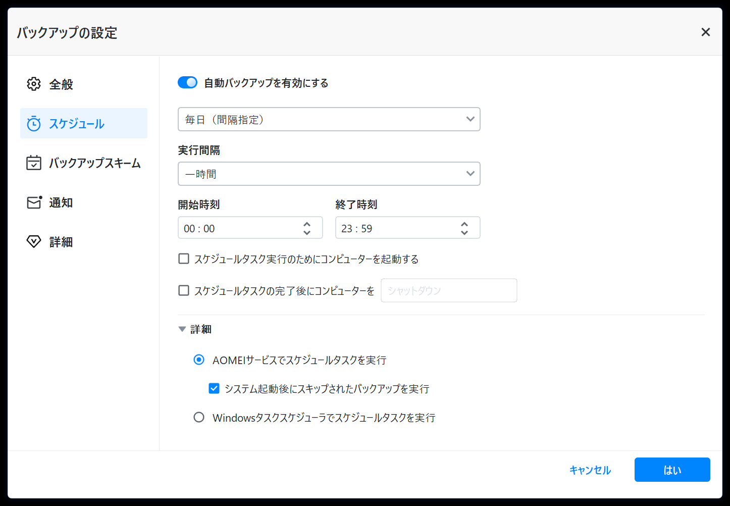 特にAOMEI Backupperは、柔軟性に優れた細かい設定ができ、びっくりするくらいに軽量高速なところが一番のポイントだと思います。