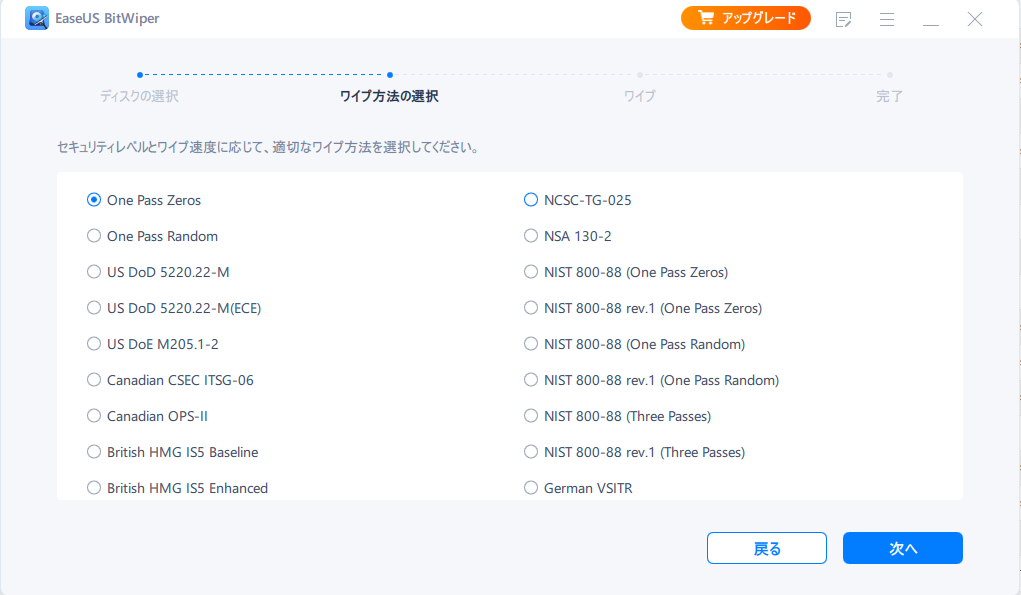 | NIST 800-88 (One Pass Zeros) | NIST基準で0を1回書き込む。Clearに相当 |